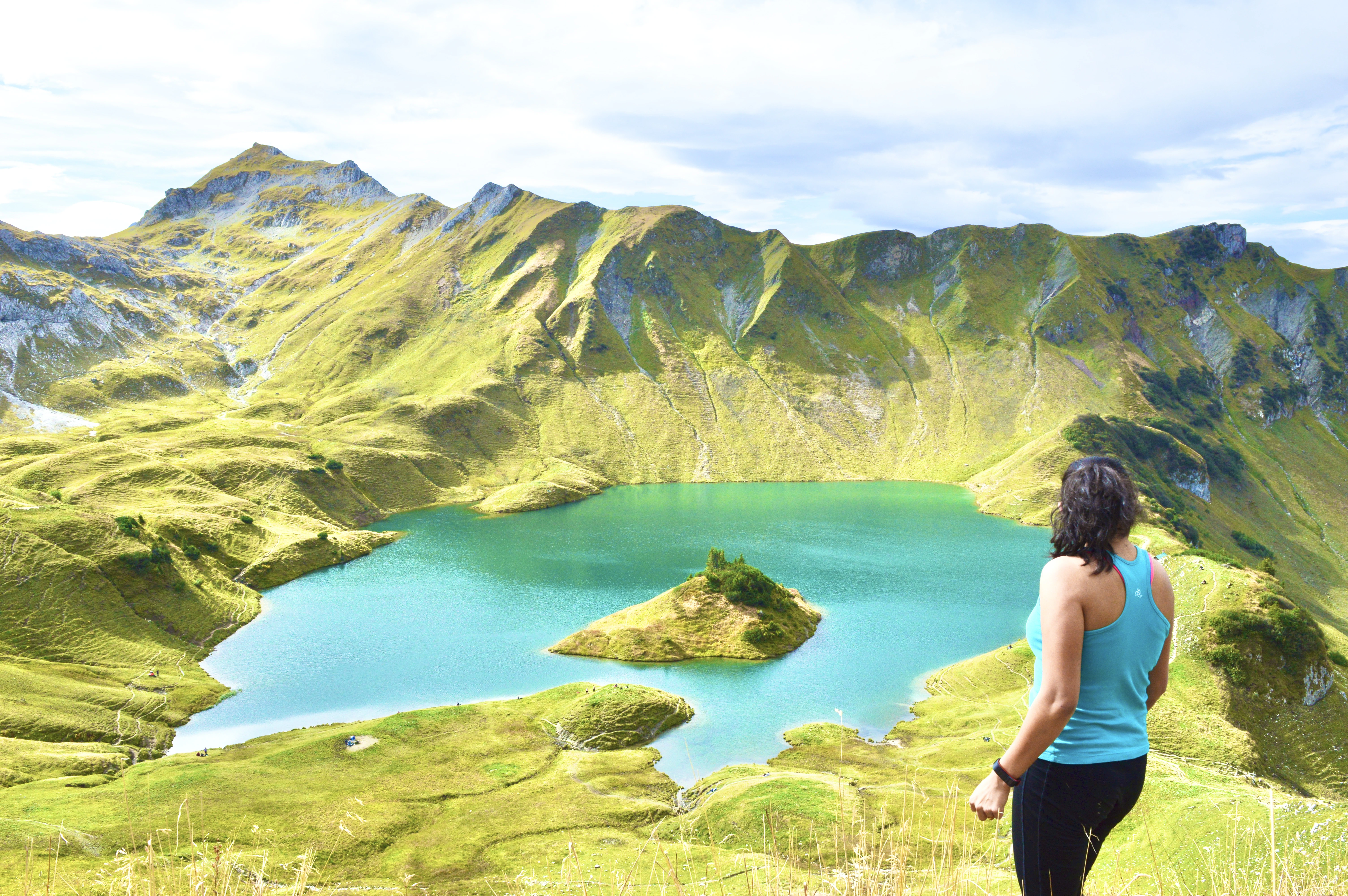 a person standing on a hill overlooking a body of water