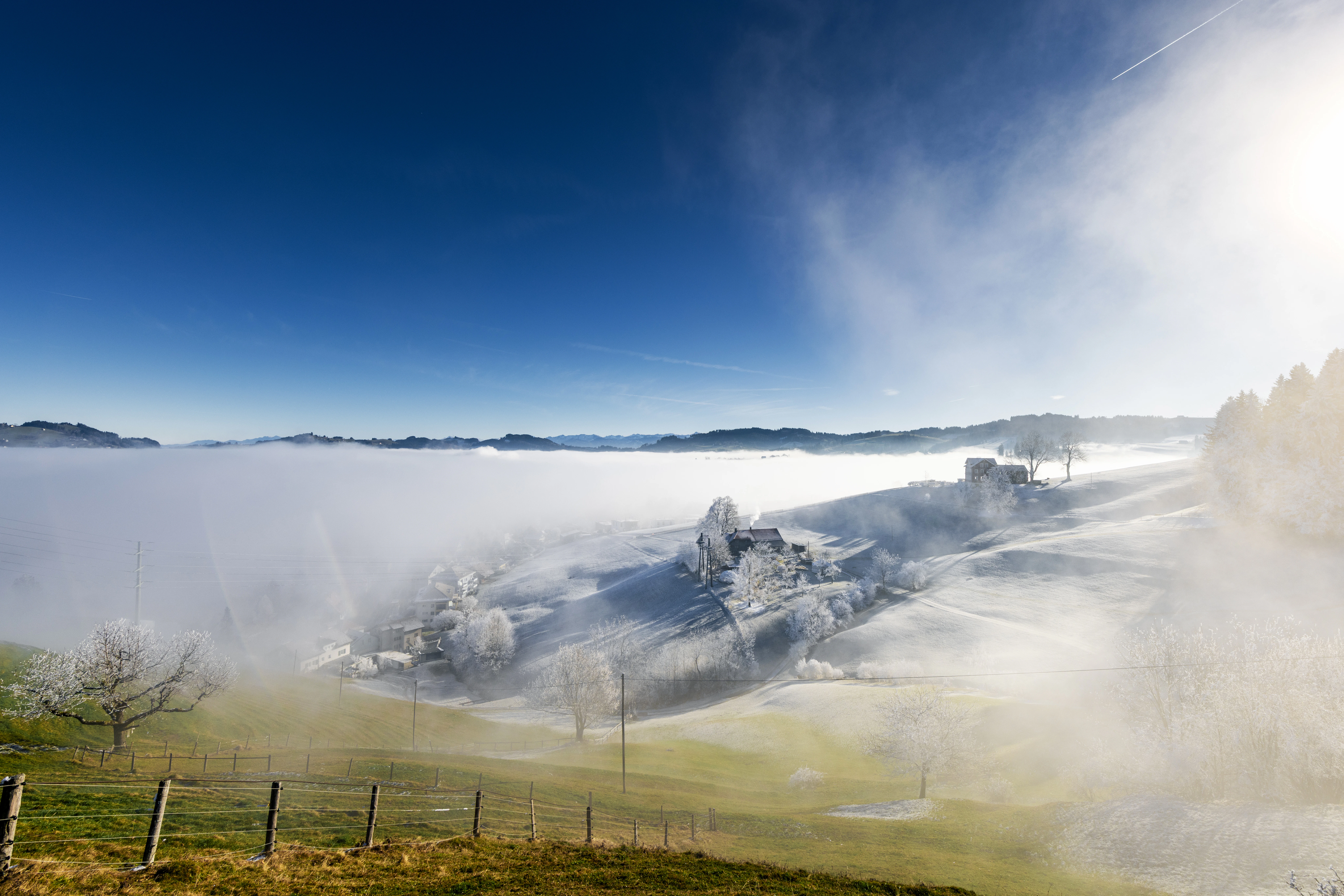 Kalt mit -5 bis 3°C, mäßig Schnee im Tal, auf dem Säntis bis zu 8 Meter Schnee