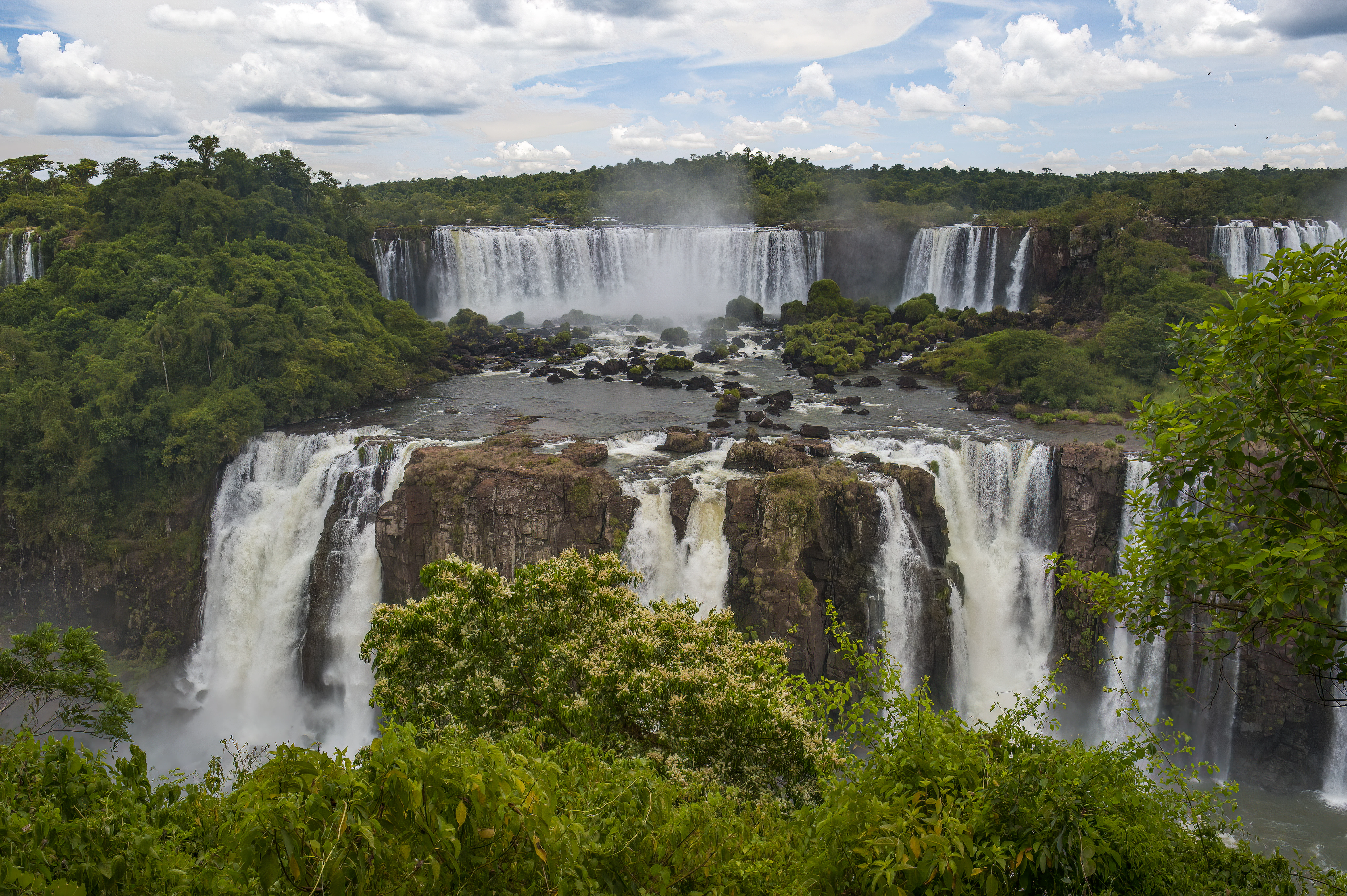 Überwäeltigendes Gesamtpanorama über alle 275 Fälle: der beste Blick auf das halbkreisförmige Fällsystem und die Garganta del Diablo.